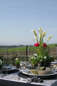 ‘’n Lente-spyskaart soek ’n mooi gedekte tafel – tussen die wingerdrye as jy kan. My kunstige blomvrou in ons buurt - Anneke Huyzer van die Daisy d’Vine – is altyd vol idees.