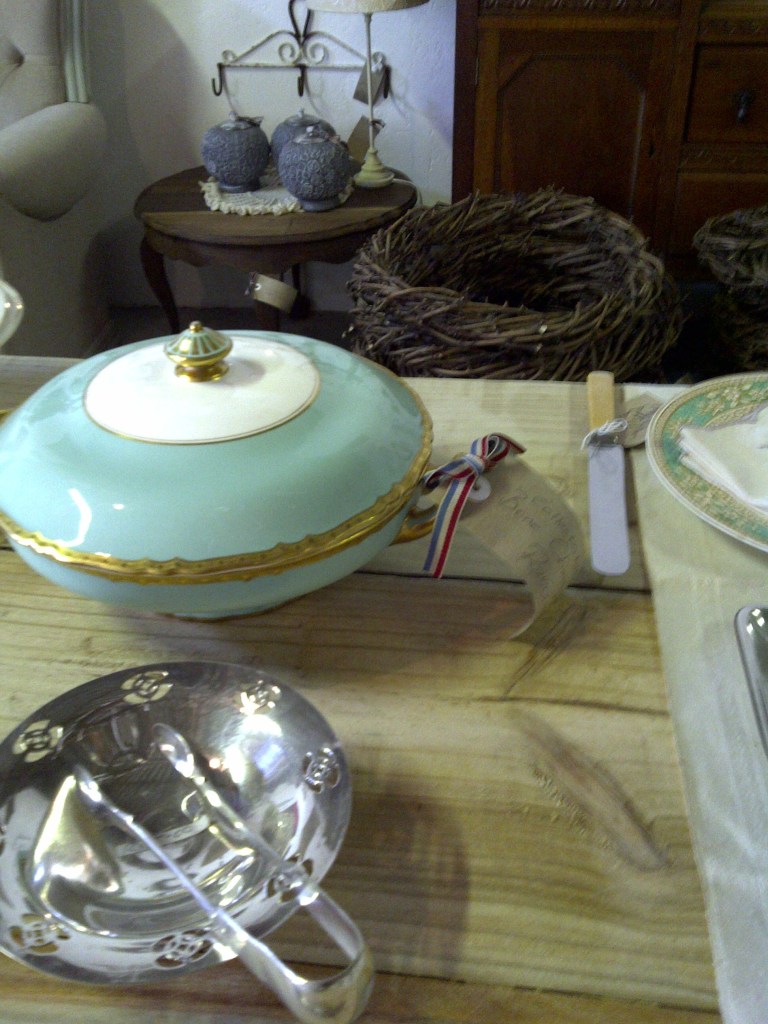 I saw these green and gold vintage teacups and couldn’t resist it. - A turquoise Limoges serving dish, slightly battered but still beautiful;