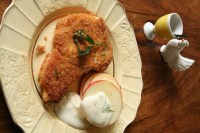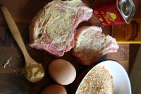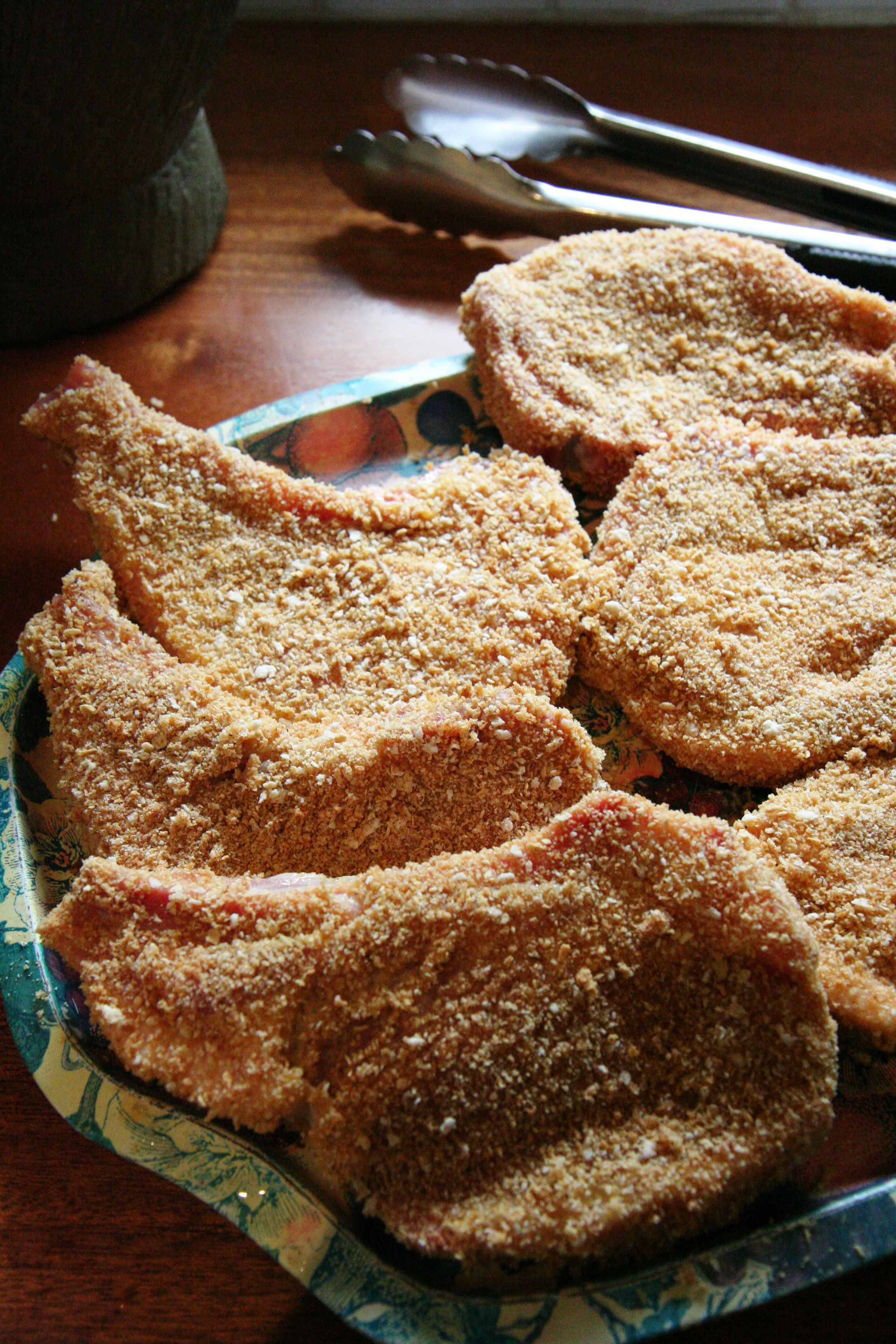 Maar toe op ‘n dag vertel my liewe Anita vriendin-en-kollega hoe sy haar varktjoppies maak deur dit eers goed oraloor met Dijon mosterd te smeer voor sy dit in die eier doop en dan in krummels. Met die eerste probeerslag proe dit so heerlik anders as die hartseer-varktjops wat my aan die verlore koshuismeisie laat dink, dat my varktjops nou altyd eers ‘n goeie smeersel mosterd kry.
