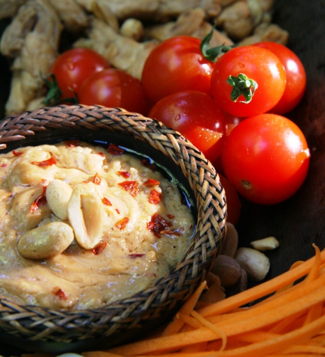Wat die slaai van rou en gaar groente so spesiaal maak is die grondboontjie sataysousie wat oorgegooi word of in ‘n aparte bakkie as doopsous bedien word. So lief is ek daarvoor dat ek dit ingesluit het in ons Huiskok Glanskok kookboek.