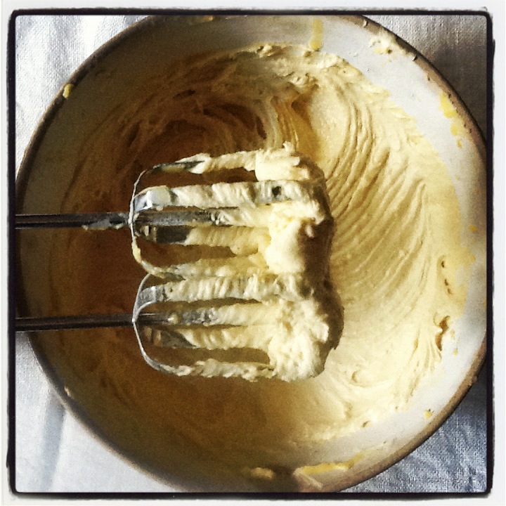 Klits die eiers en die suiker in ‘n mengbak tot net gemeng. Klits die vanielje, suurlemoenskil en die sout by. Klits die meel by tot net-net gemeng (sommige resepte beveel aan dat die meel net ingevou word). Voeg nou die gesmelte botter in ‘n straal by en klits net genoeg om dit te meng.