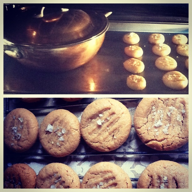En daar kry ek die gier om bietjie Malden soutvlokkies op koekies te strooi. (Dit plaas natuurlik die koekies nou in ‘n 4-bestanddeel-kategorie, maar wat. Ek het daai koekiedeeg so geproe en geweet ‘n knippie sout het niemand nog ooit skade gedoen nie …. En in elk geval dis baie trendy om sout op als wat soet is te strooi.
