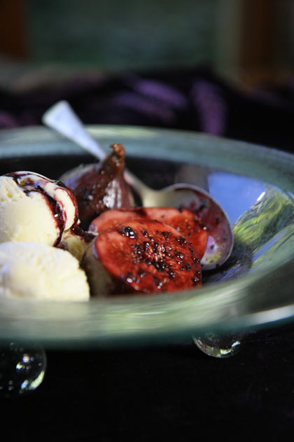 Prut die vye, peper en port vir 3 minute. Lig die vye versigtig uit die stroop met ‘n gaatjieslepel en laat die peperige portstroop effe afkook. Gooi oor die vye en bedien met vanieljeroomys.
