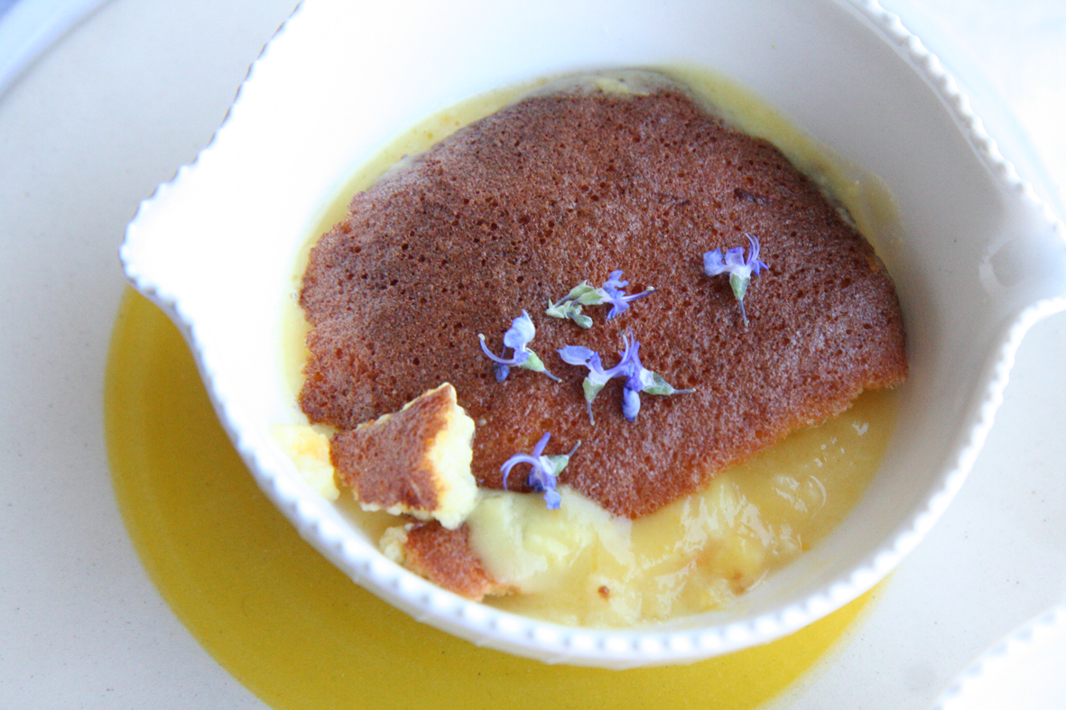 Vir diegene wat nog nie ‘n Japie-aanhanger is nie – ‘n bietjie agtergrond.  Dis ‘n ligte, sitrusgegeurde gebakte poeding (a) met ‘n sponsige, soufflerige bo-laag; en (b) steek die lepel in dan ontdek jy die heerlike, fluweelsagte sitrussous onder. ‘Self-saucing’ noem die Engelse dit.