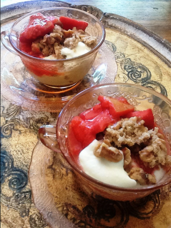 Ek volstaan gewoonlik pleinweg net met Ideal melk – ingedampte melk – wat die gereg die smaak van my herinneringe gee. Indien jy uitspattig wil wees kan jy hierdie ryk room a la Ottolenghi daarby maak, lekker gegeur met vanielje, kardomom en steranys.