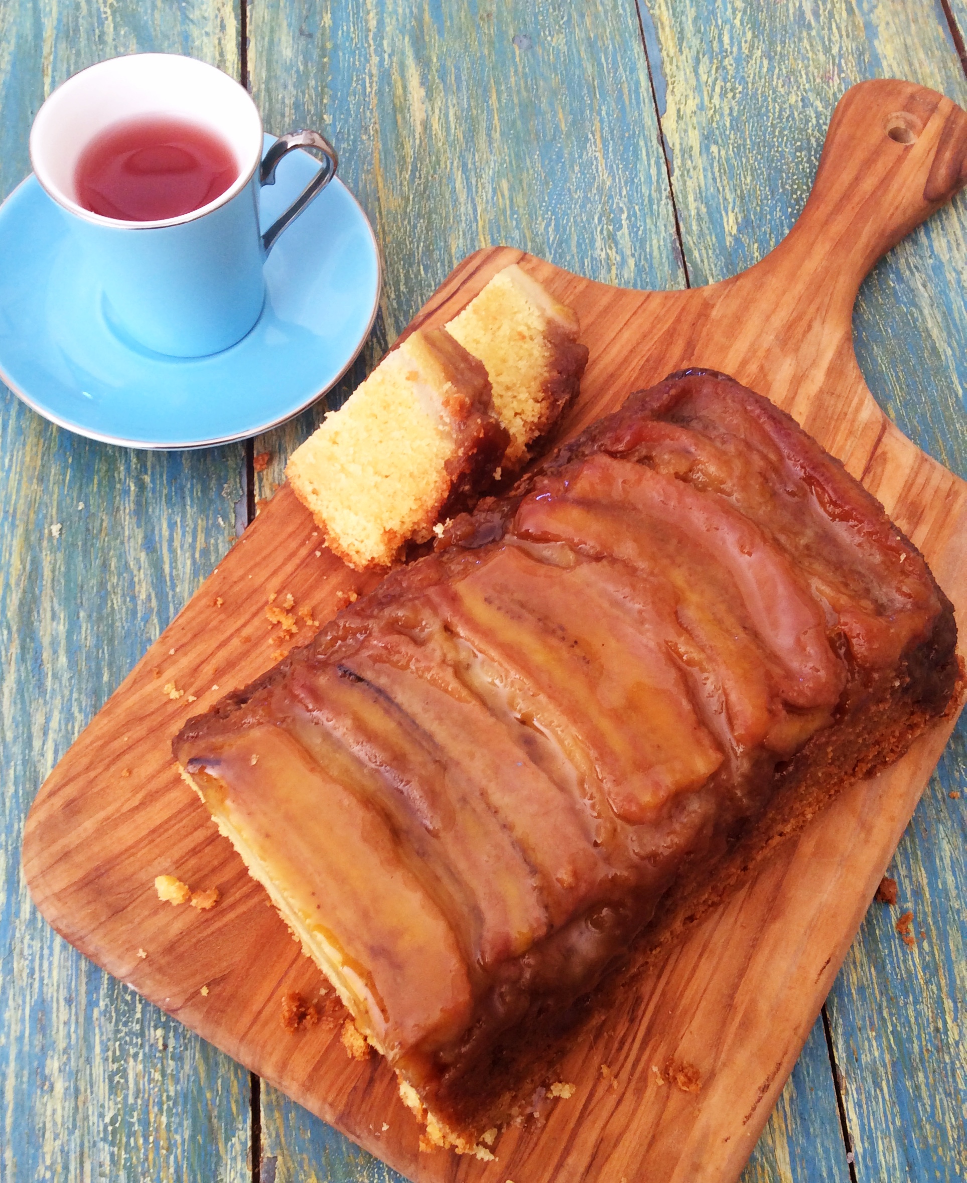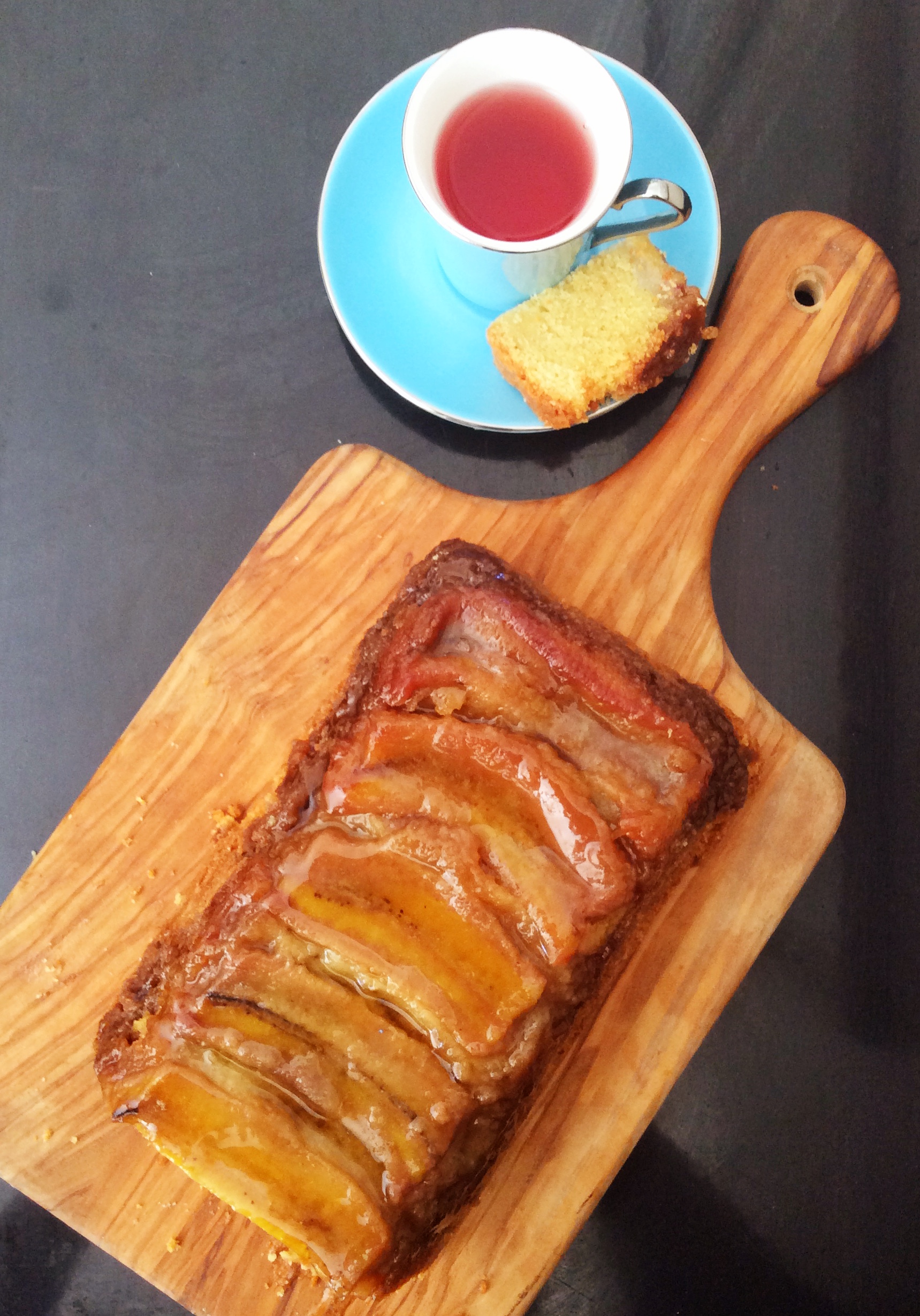 4 thoughts on “Piesang- en sagte toffie onderstebokoek