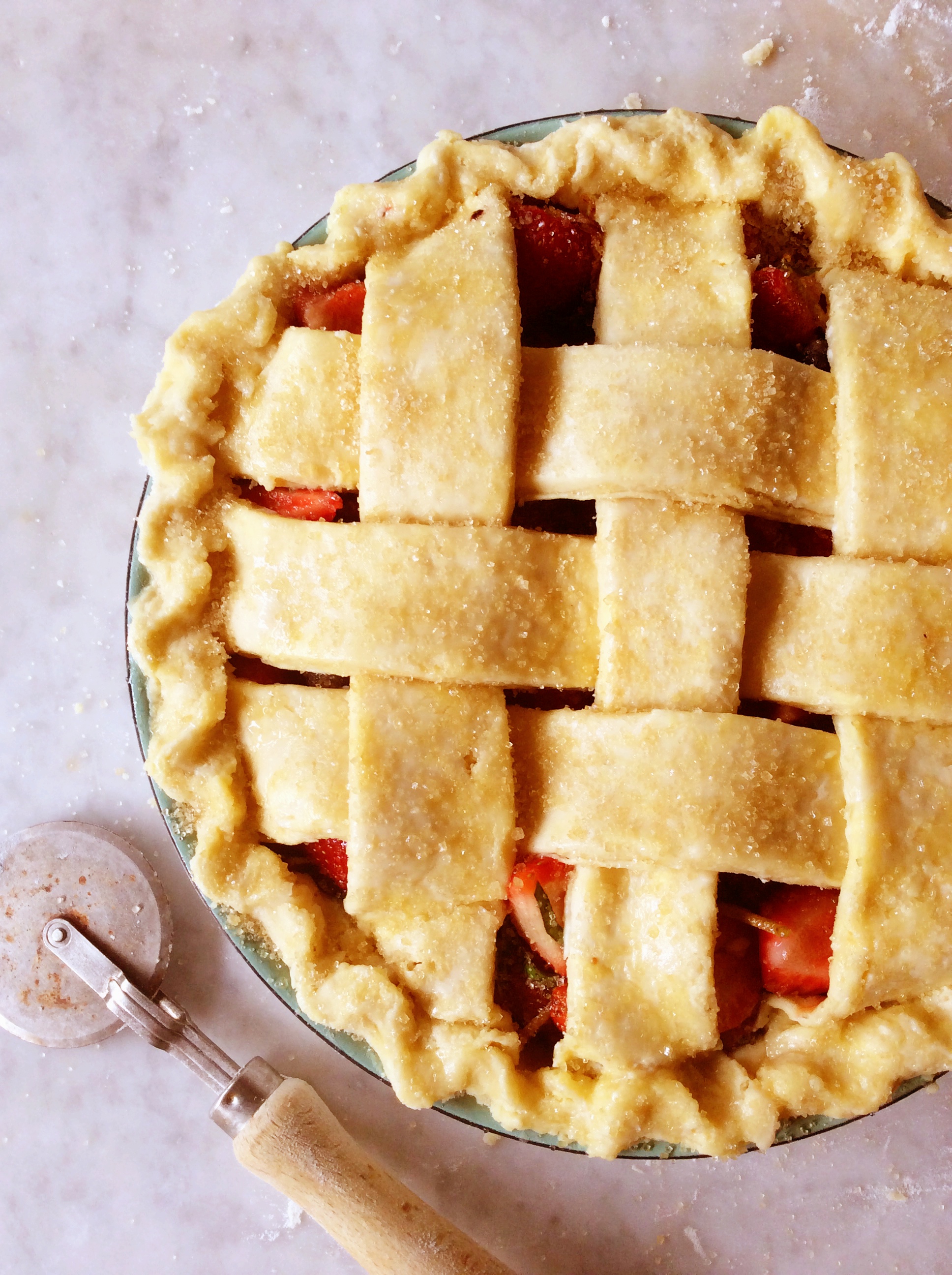 Somer is juis so ‘n seisoen van oorvloed. Aangevuur deur my huidige bakobsessie wil ek net van alles iets maak wat kan oond toe. Ek stuur my nie aan die hitte nie; trek net die kombuisskuifdeure wyd oop sodat die briesie my kan afkoel. ‘n Resep vir ‘n gebakte aarbei-pastei trek my aandag. In my yskas is daar juis vars aarbeie, bloubessies en klein swart vytjies wat ek vir ontbyt aanhou. In die vrugtebak op die eetkamertafel is daar ‘n paar ryp pruime en nektariens wat ook deel van die slaai-paai kan word.