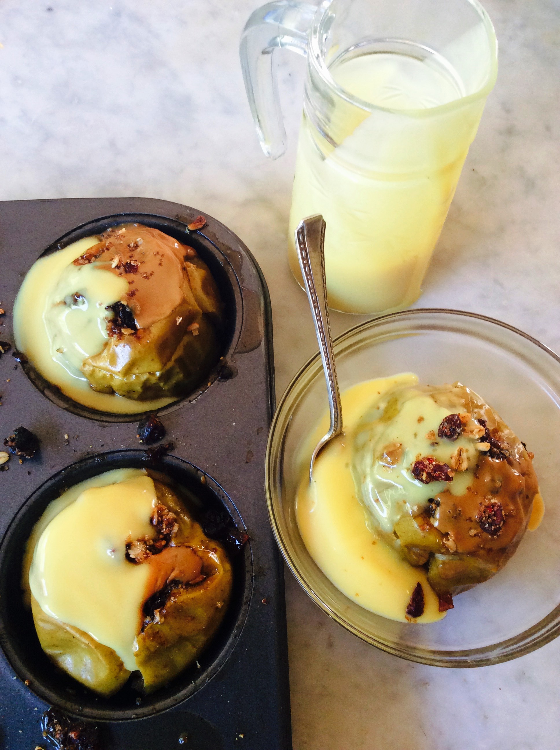 Wenk: die appels word in muffinpannetjies gebak wat sorg dat al die heerlike appelsappe, botter en speserye nie op die bakplaat agterbly nie. Jy kan enige tipe appel vir hierdie metode gebruik – gebruik eerder kleiner appels as groot lummels wat langer bak.  Vir die spekulaas-geure kan jy bloot die tipiese spekulaas-speserye gebruik, of jy kan die luukse roete vat om die appeltjies te bedien met spekulaasbotter – oorsee bekend as cookie butter. Kyk onder vir resepte as jy tuisgebakte  speculaas wil maak (heerlik). Ek gee nie ‘n resep vir die vla nie – maak dit soos jy daarvan  hou.