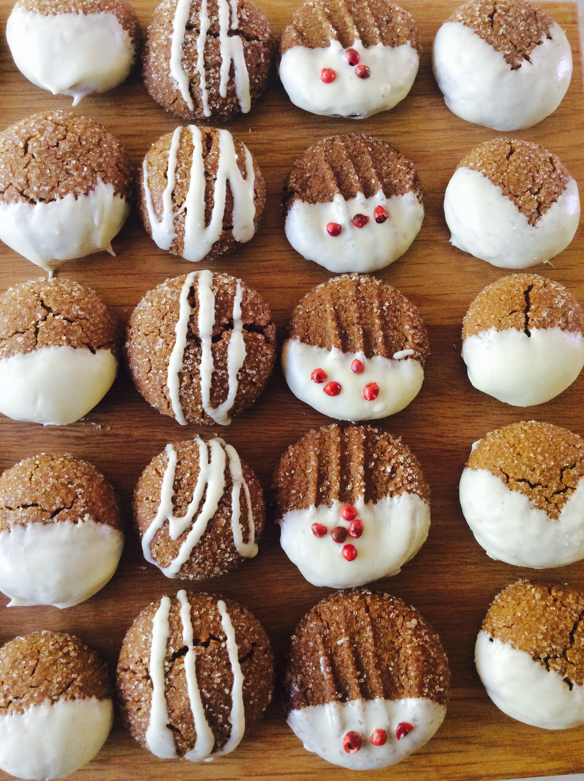 Gemmer-kaneelkoekies in witjsokolade gedoop vul die huis met warm geure.