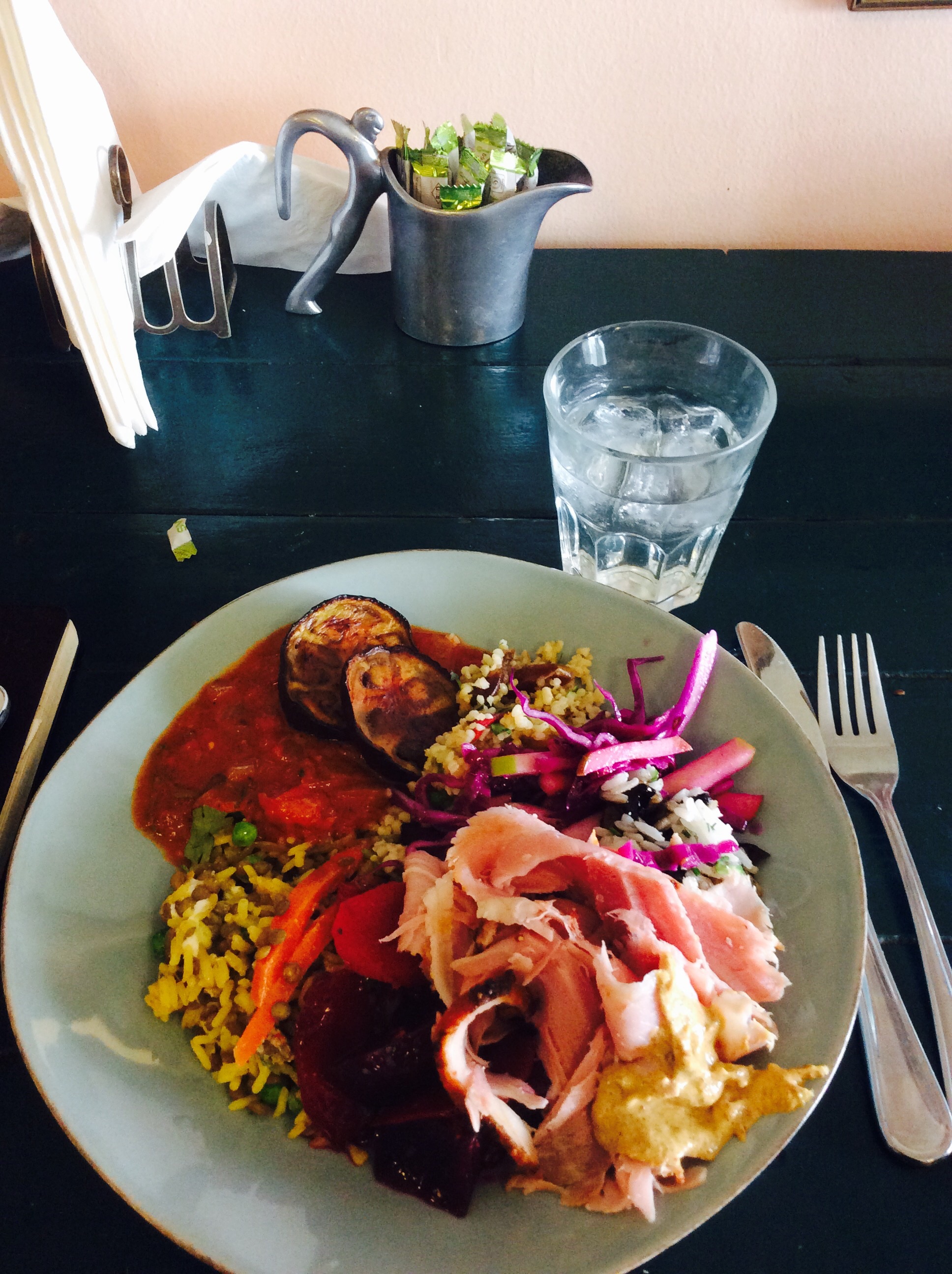 Love at first sight vir my was The Kitchen in Woodstock. Lankal ‘n bewonderaar van Karen Dudley se kookboeke, het sy in lewende lywe en die warm happiness van The Kitchen my oorrompel. Sy het vir Ian ‘n Love Sandwich aangebied en vir my die lekkerste bord slaaie – Ottolenghi sal mal wees oor haar kos. Die plekkie is uniek in karakter, met soos die omgewing. Nie ‘n enkele gram pretensie nie. Ek is so bly dis ‘n stukkie Kaap wat Michelle Onama ‘n paar jaar gelede kom ervaar, al het sy my voorgespring.