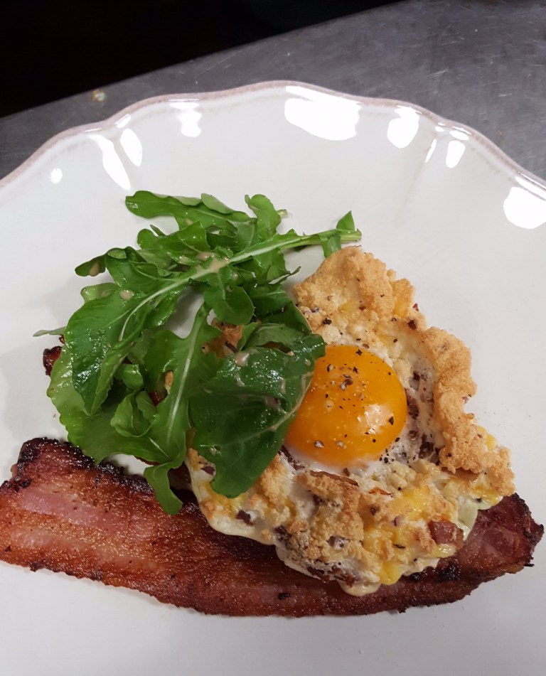 Variasie: Vir ‘n broodlose variasie, bedien die wolkeier met kaassous en ligte slaai op stroke brosgebraaide spek.