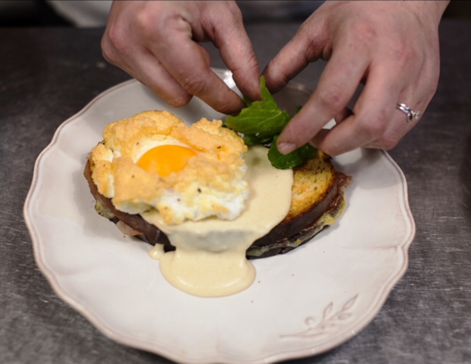 Sy maak die gewilde geroosterde kaas- en ham oopbroodjie normaalweg volgens die Franse café-styl met ciabatta of sourdough-brood uit haar eie oond, goeie Parma-styl ham, beleë boerenkaas en fluweelgladde bechamelsous. In lyn met tradisie kry die croque madame voorkeurbehandeling met ‘n geposjeerde eier bo-op om dit van die monsieur te onderskei.