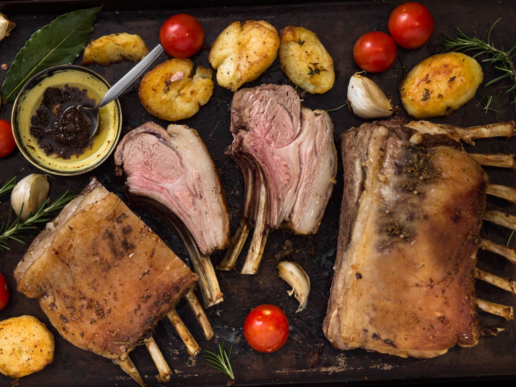 - Voorverhit die oond na 200°C. Klad die lamsrak droog met kombuispapier.