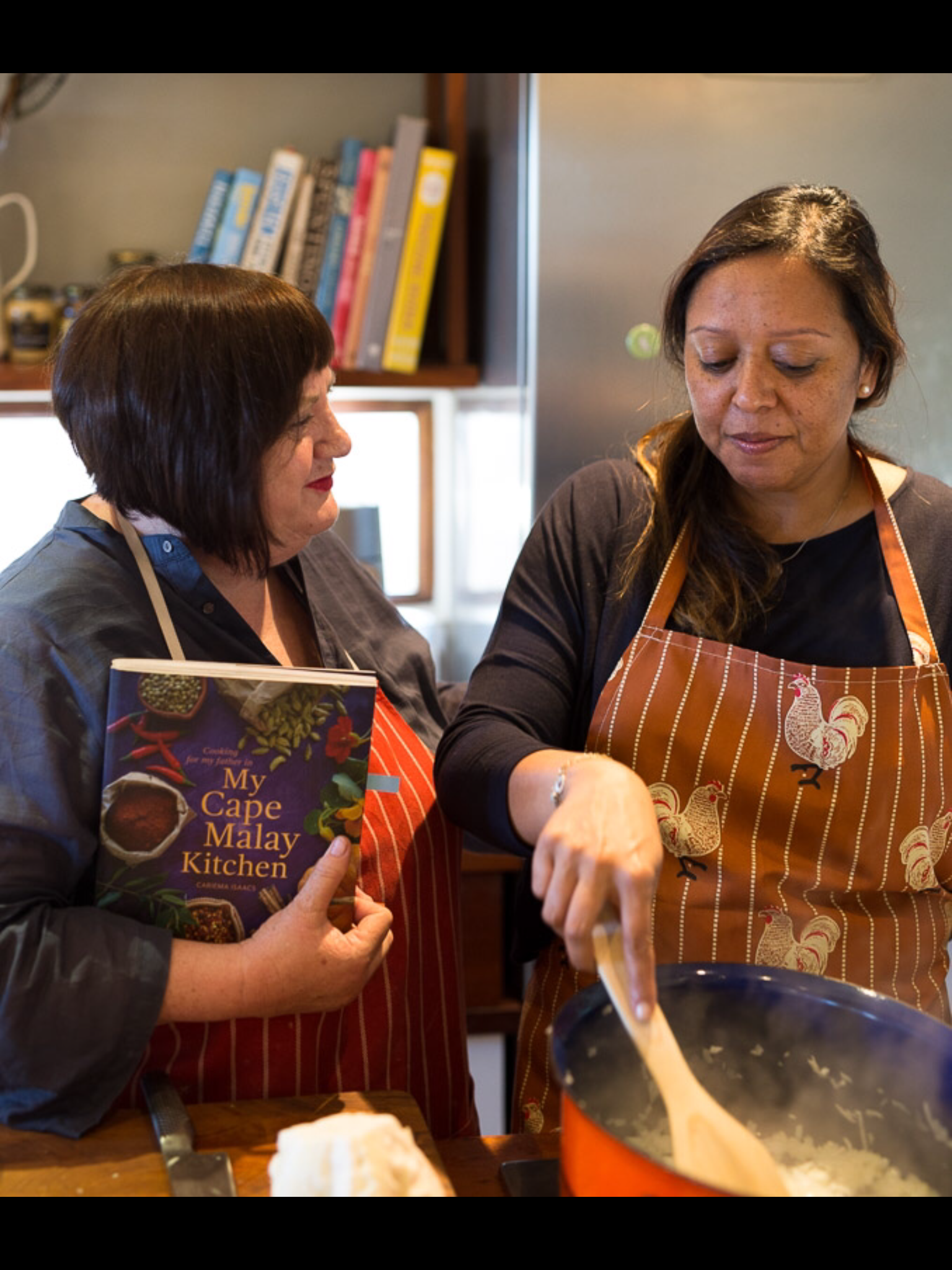 en Cariema dop te hou terwyl sy vir ons denningvleis en breyani in my kombuis optower.
