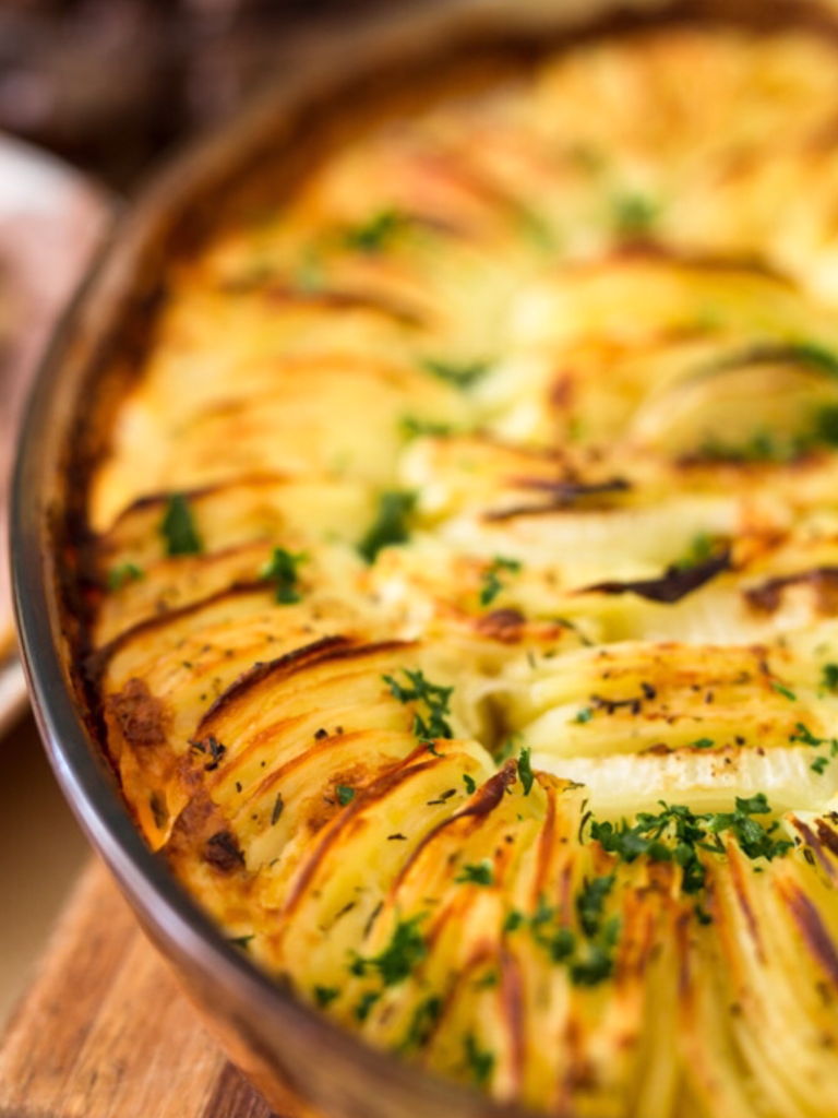 Die geure van ‘n klassieke Dauphinoise aartappelgebak – goudbruin en borrelende gesmelte kaas, neutmuskaat en kruie-room – waarborg dat die eters met die eerste skep al ‘n tweede een beplan.