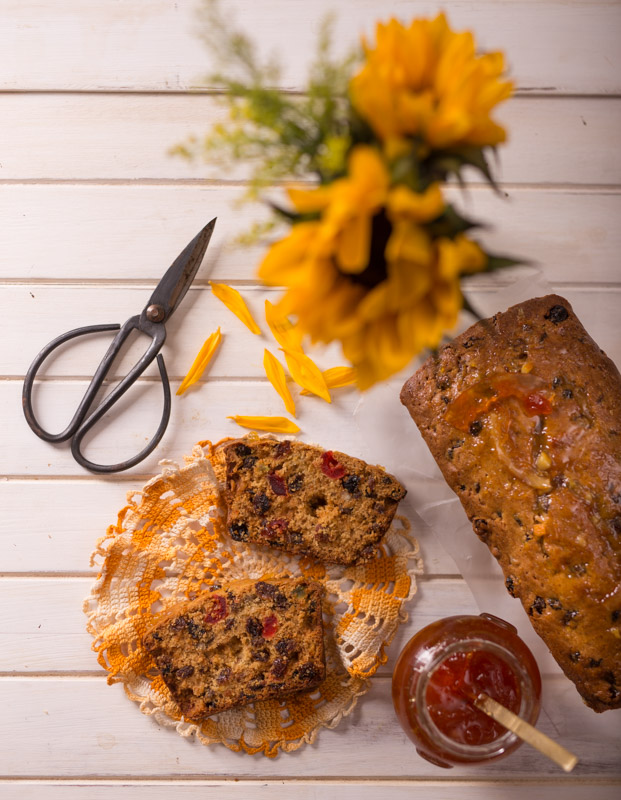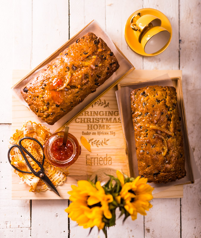 • Geborduur met glansvrugte, stroperige gemmerstukke en blink robyne kersies? Of ‘n alledaagse, vriendelike vrugtekoekbroodjie wat met botter, tee en simpatie (en ekstra marmalade) ‘n teenvoeter is vir  die bittersoet van ‘n jaar.