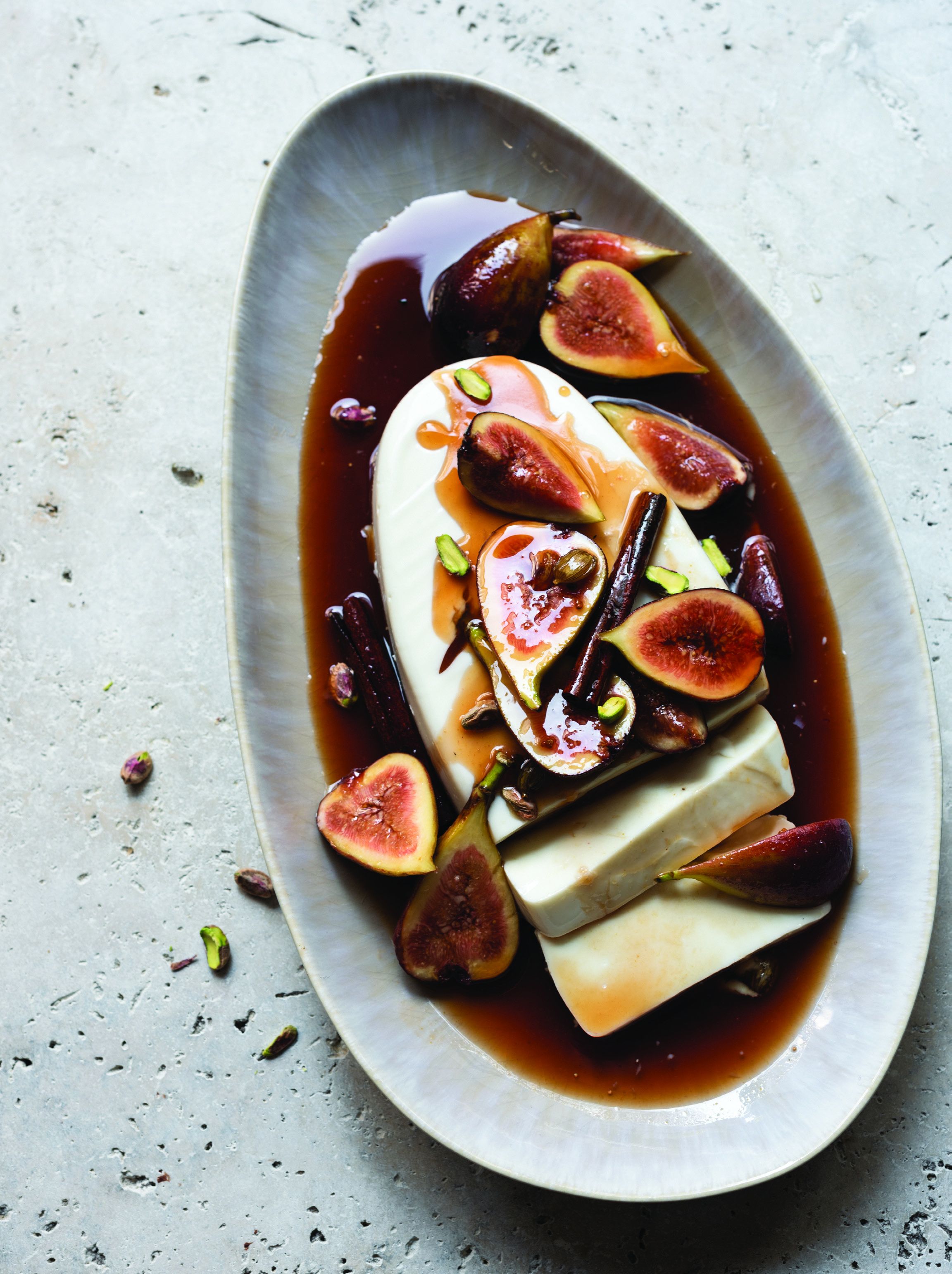 Jogurt terrien met kardamom– lemoenstroop en vye
