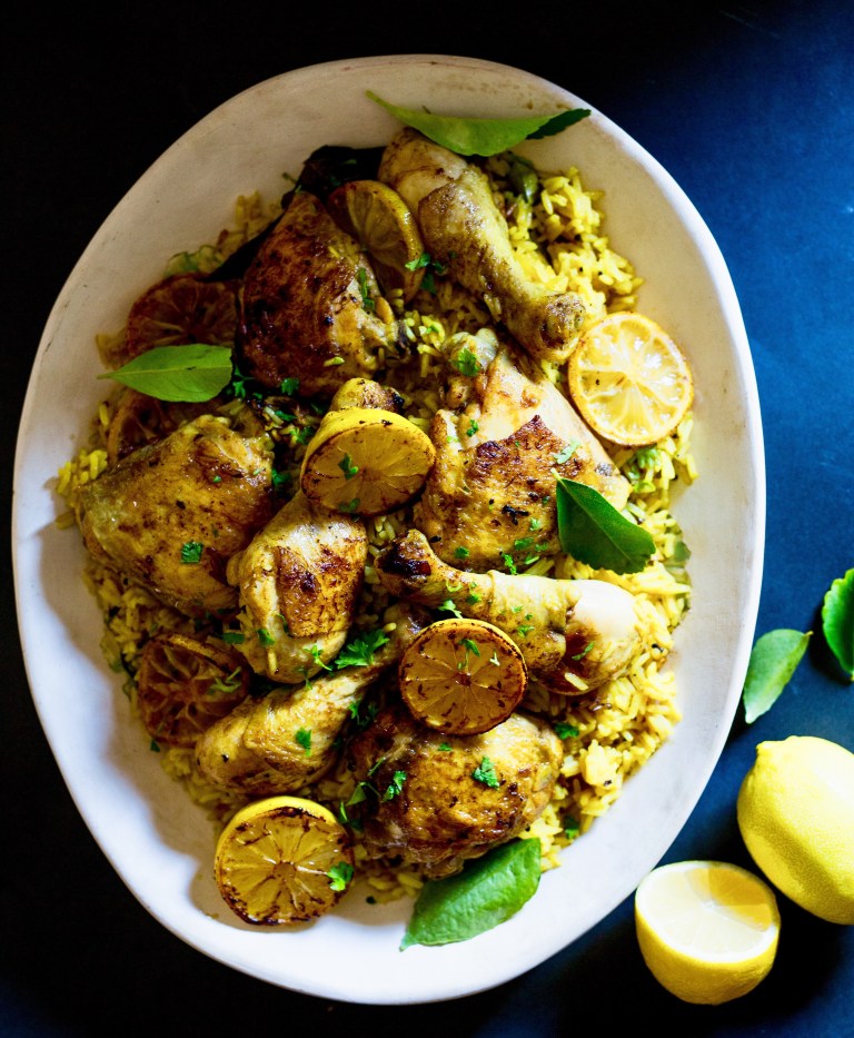 My sonnige weergawe van die klassieke Griekse hoendergereg word met geelrys gemaak vir ‘n stukkie Kaapse nostalgie, mosterdsade vir warmte en kerrieblare uit my tuin vir geur. Almal wat my goed ken weet dat suurlemoene my innervrug is; en dat geel my happy kleur is. So sal my man eerder vir my ‘n  sak  suurlemoene van die winkel af bring  as ‘n bos  rooi rose.