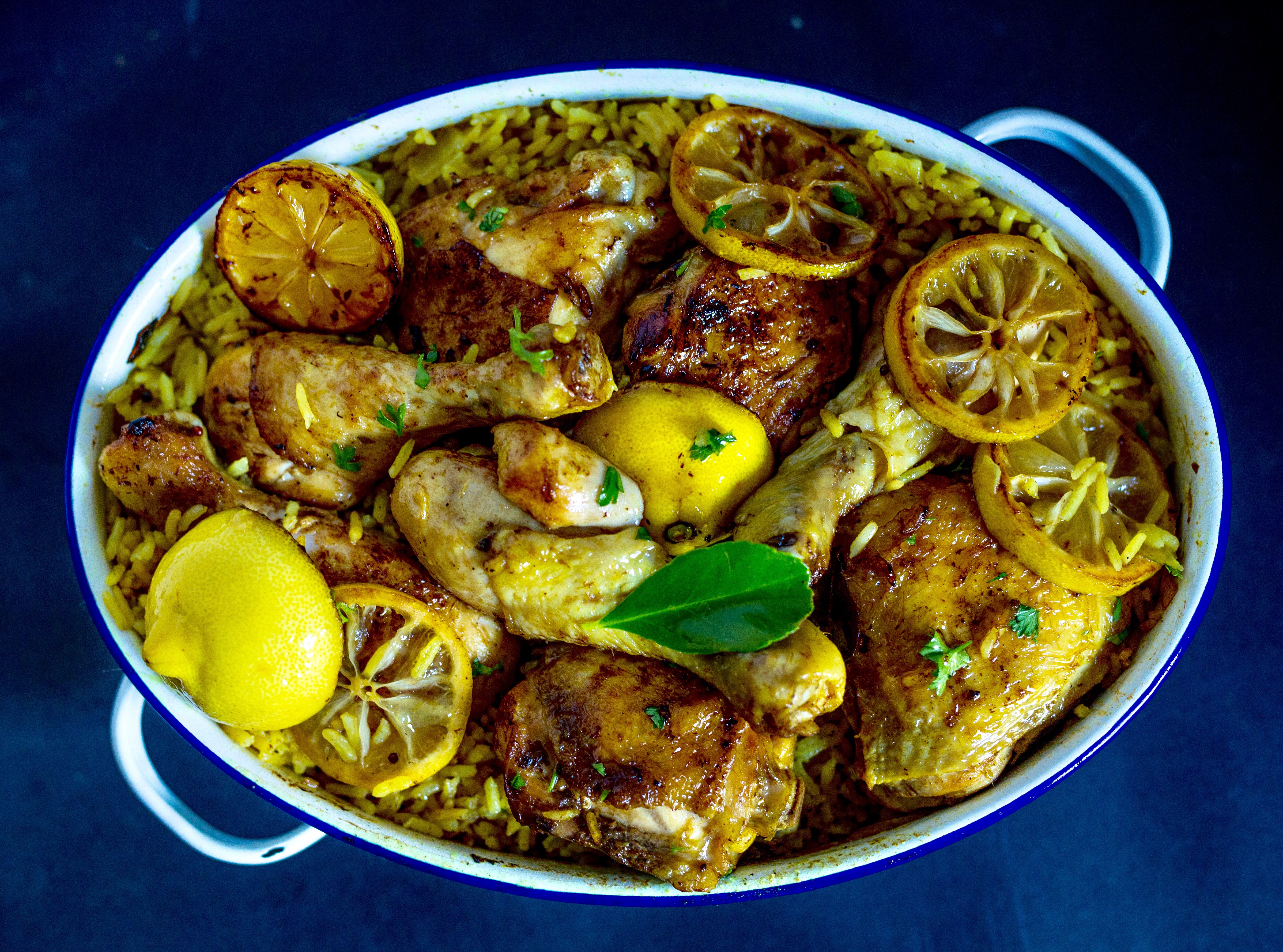 Die kwistige gebruik van suurlemoen is ‘n aangename kontras met die rykheid van die  hoender en rys. Goudbruin-gebraaide suurlemoenskyfies rond die eenpotgereg mooi af. As jy pitlose suurlemoene soos LemonGold gebruik, hoef jy nie bang te wees om op ‘n bitter pit te byt nie, andersins delf maar eers die pitte uit.