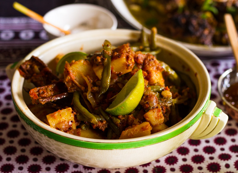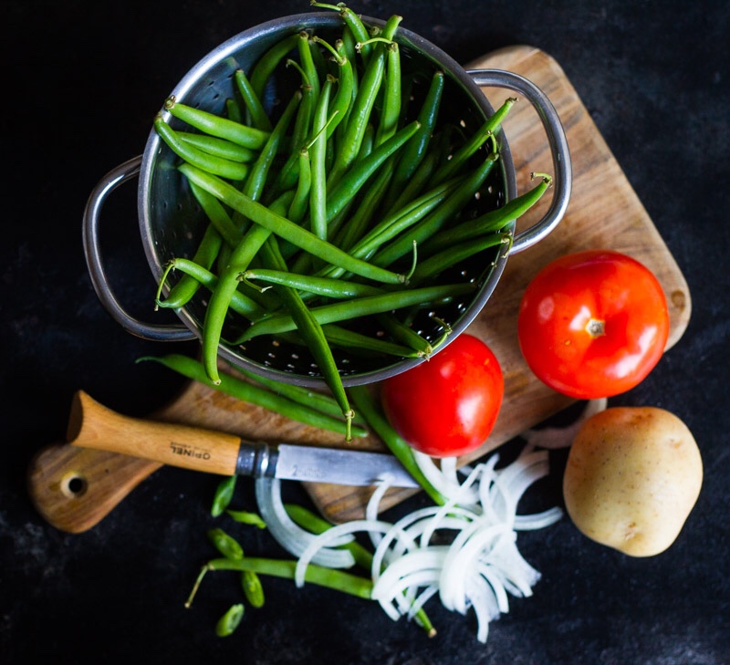 My kosnuuskierigheid het die oorhand gekry. Griekeland toe vir fasolakia lathera – groenbone gestowe met tamatie en aartappel in olyfolie. Eintlik is olyfolie die hoofbestanddeel, want die groente bad behoorlik daarin. ‘Lathera’ verwys na die klassieke Griekse metode om groente in olyfolie (en gerasperde tamatie) gaar te stowe tot smeltsag. Jy kan nog groente bysit, gewoonlik uie, aartappel en soms ook wortel.