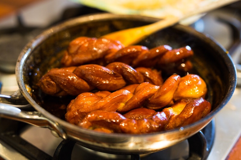 Die erfenissoetigheid vat vlam met lemoen en brandewyn. Wenk: die deeg rys oornag, so begin reeds die vorige dag. Die lang rys gee ‘n ligte tekstuur aan die koeksister en diepte aan die smaak.