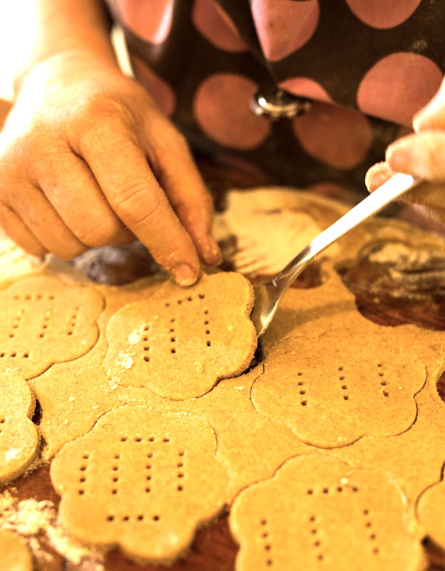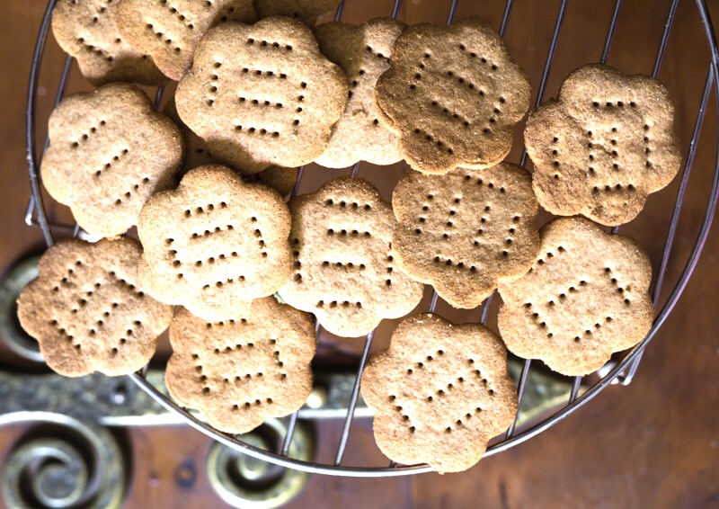 Digestive beskuitjies was nog altyd een van my gunsteling bederfgoed, en dit het daai karaktereienskap asof dit eintlik gesond is. (Dis ook al jaar na jaar Brittanje se gunsteling koekie… in ‘n land wat koekies kén). Maar sedert die pakkies Baker’s digestive al hoe kleiner word maar ‘meerder’ kos het ek dit ophou koop vir ons peuselkas. Maar vandag besluit ek om my eie te bak. En in die Kersfeesgees geur ek die volgraankoekies met spekulaas-speserye. (Ek gebruik Gideon Milling se volgraanmeel- dis dié ware jakob). Nou proe ek sommer my ouma se outydse soetkoekies in die Britse beskuitjies.