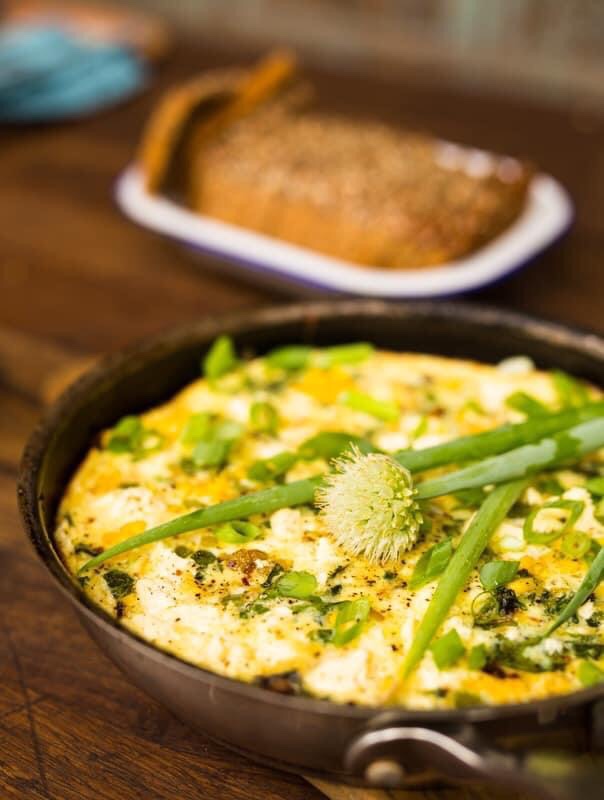 Gister het ek dit na ‘n lang tyd weer gemaak,om ‘n spesiale vriendin wat vleis vermy te bederf met iets heerliks; ‘n afshowplek vir die vars kruie uit my tuin. Hierdie frittata is gemaak met feta, uie, jong spinasie, groenrissie, pietersielie, tiemie, salie en ertjies. Saam met bruinbrood, kraakslaai en brandsousie is dit ‘n maaltyd op sy eie. My sprietuie wat nou blomme skiet is as garnering gebruik.