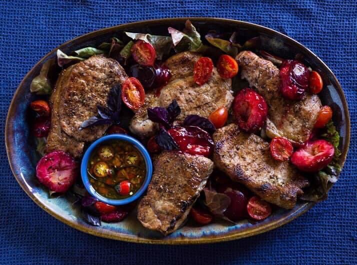 Rump is my gunsteling steak-snit. Ons het onlangs vir die eerste keer vark-rump oor die kole gebraai en wat ‘n verrassing. Jy kan die pruime met nektariens vervang.