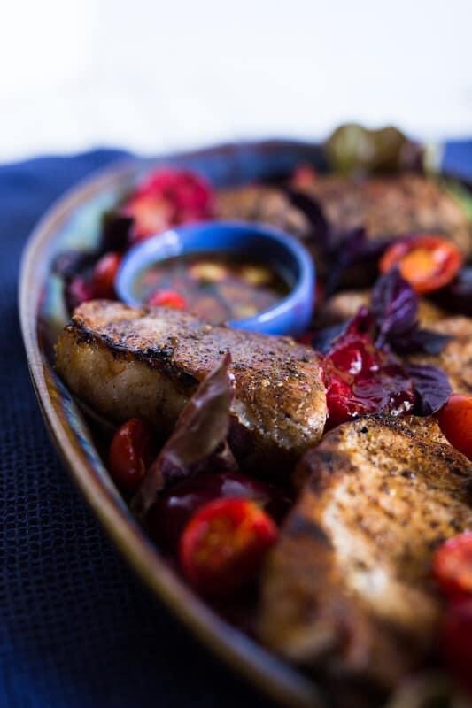 Tamatie se soetigheid vlei die surigheid van pruime. Steek die vuur aan of span ‘n riffelpan in hiervoor.