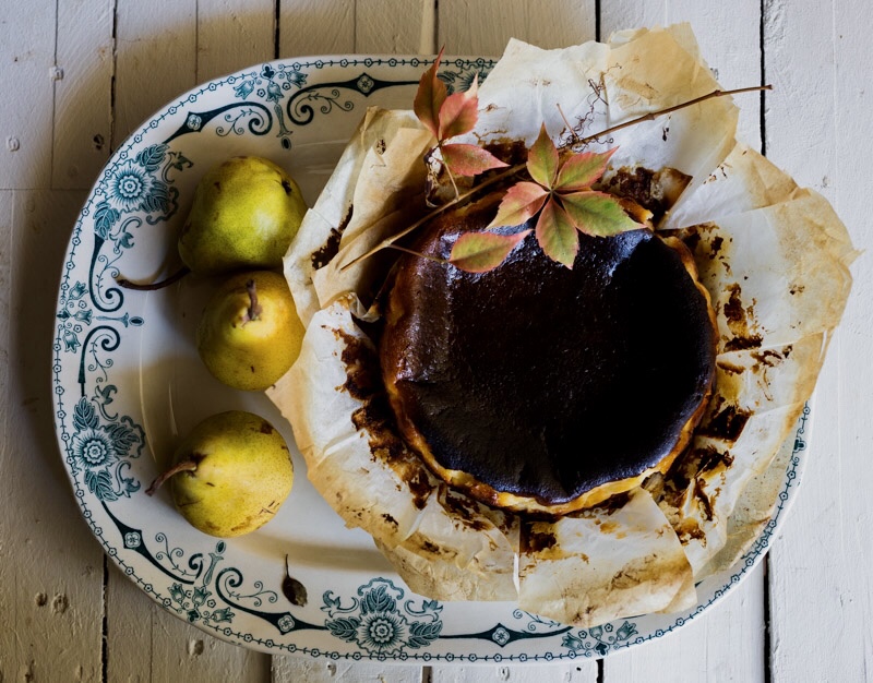 Die swartgebrande lelik-maar-mooi koek het ontstaan in San Sebastián, Spanje; en breek al die reëls en tradisies van die punterige gebakte New York-styl kaaskoek. Die bokant van die tarta de queso, soos dit in die Baskiese streek bekend staan, móét so donker gebrand wees, die koepel móét so insak en dit kan maar kraak. Geen gelol met bak in ‘n waterbad nie of om dit in die oond af te koel nie. Jy bring dit sommer tafel toe nog so toegewikkel in ‘n kraag van gekreukelde, verkleurde bakpapier.