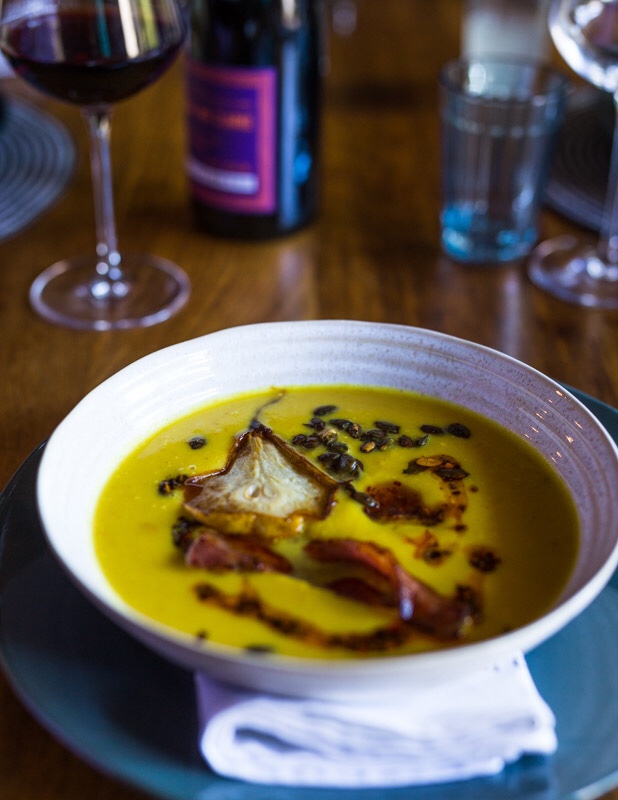 Die eenvoudige pampoensop word opgehef vir Moedersdag met pere en prentjiemooi garnering.