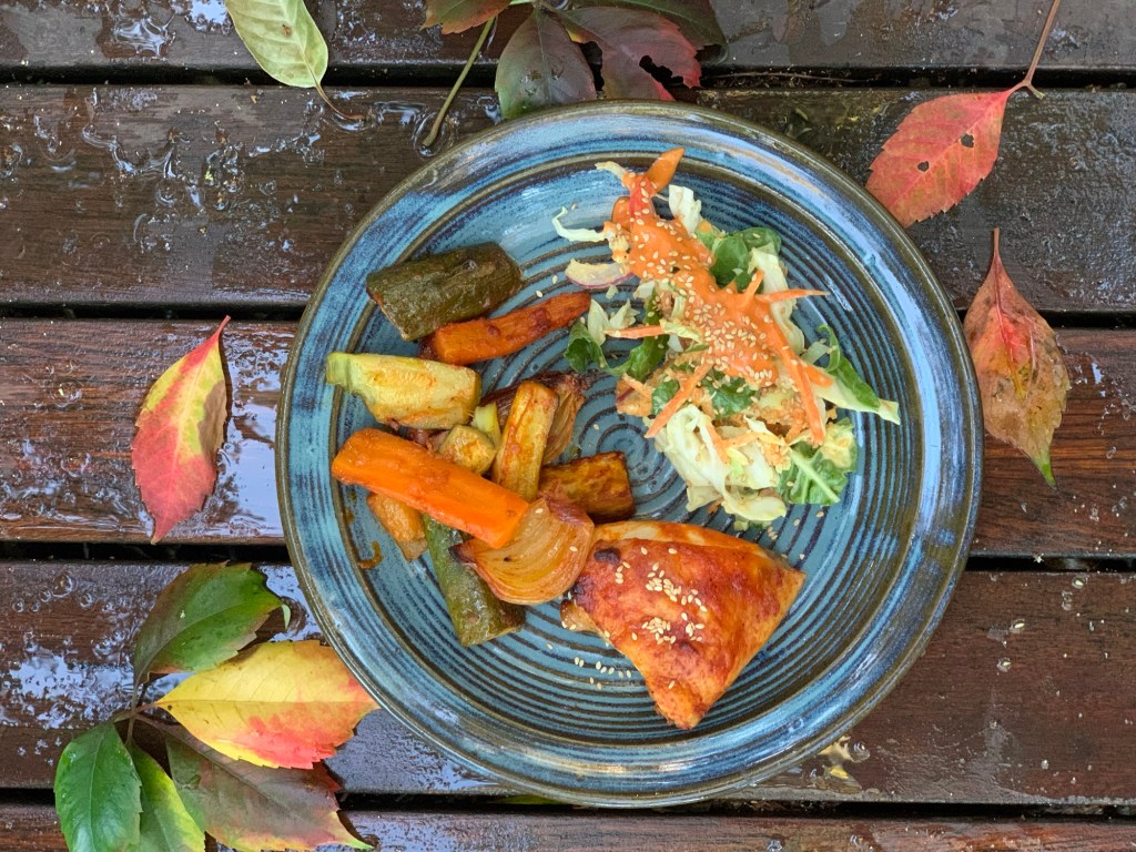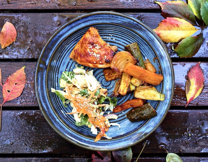 Hy is vol trieks, soos om die bakplaat saam met die oond te voorverhit en dan eers die groente by te voeg. Slim, want dan begin dit dadelik rooster eerder as om te stoom.