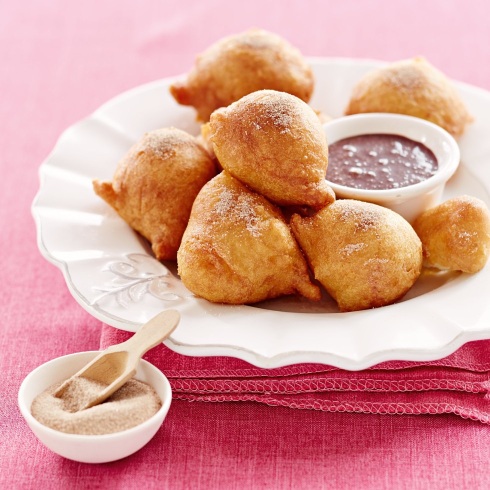 Vetkoekies met spesery-sjokoladesous so uit die boek uit