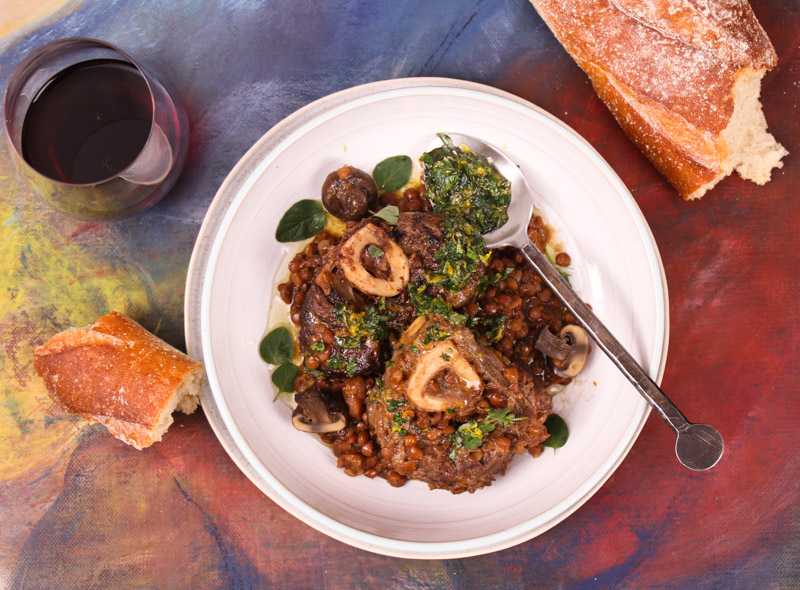 Wild en wyn: koedoe sirloin en rooiwynsous / koedoe ossobuco met lensies en origano